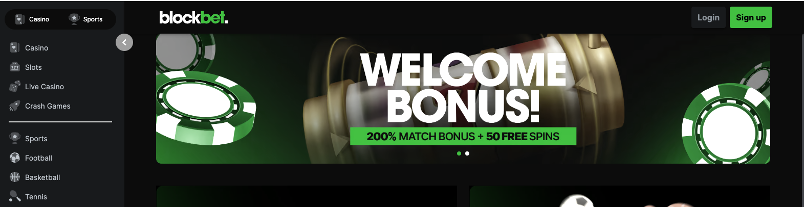 - Welcome Offer: BlockBet offers a substantial welcome bonus for new players. New users receive a 200% match on their first deposit plus 50 free spins on selected slots.
