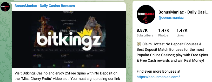 Bonus Maniac is a channel focused on sharing information about online casino bonuses, particularly no-deposit bonuses and free spins offers.