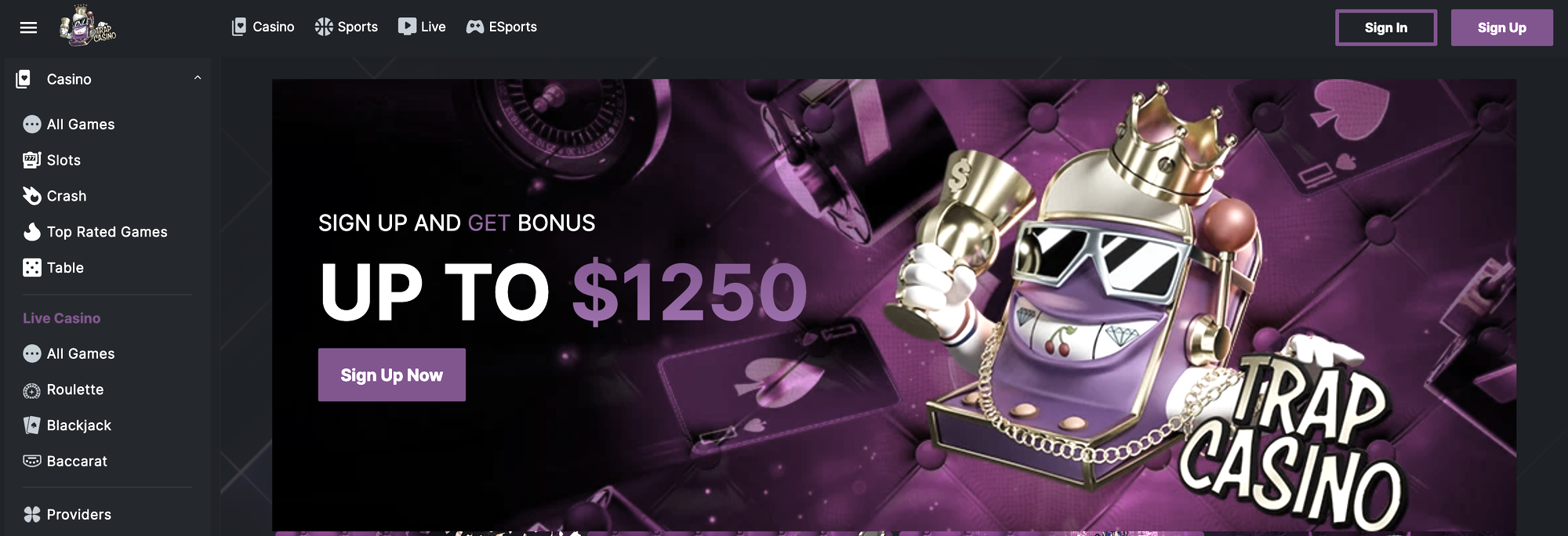 TrapCasino.com boasts a sleek, user-friendly interface that caters to both seasoned gamblers and newcomers. The platform's design ensures a seamless gaming experience, making navigation and gameplay intuitive and enjoyable. The casino offers slots, table games, and live dealer options. Players can enjoy classic casino experiences alongside innovative new games, all supported by robust technology and fair play algorithms.